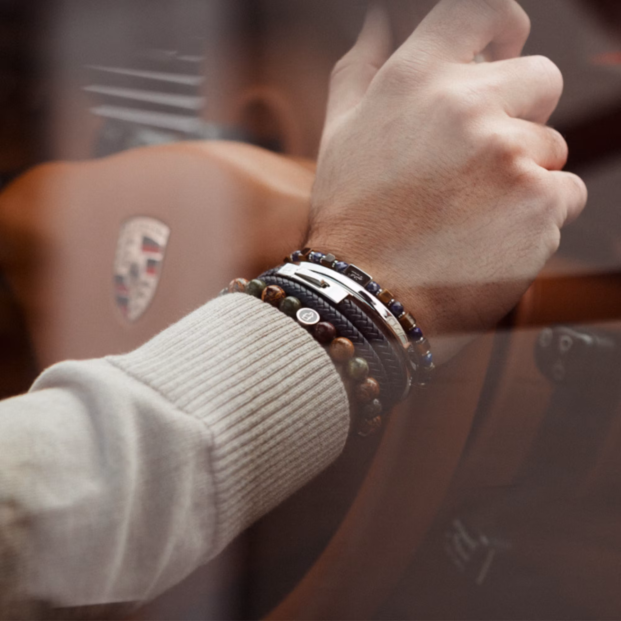 Med sina naturligt skiftande färger är varje armband unikt – inget blir det andra likt. De 8 mm stora stenarna ramas in av detaljer i rostfritt stål och vårt signaturemblem, vilket lyfter den exklusiva känslan ytterligare.