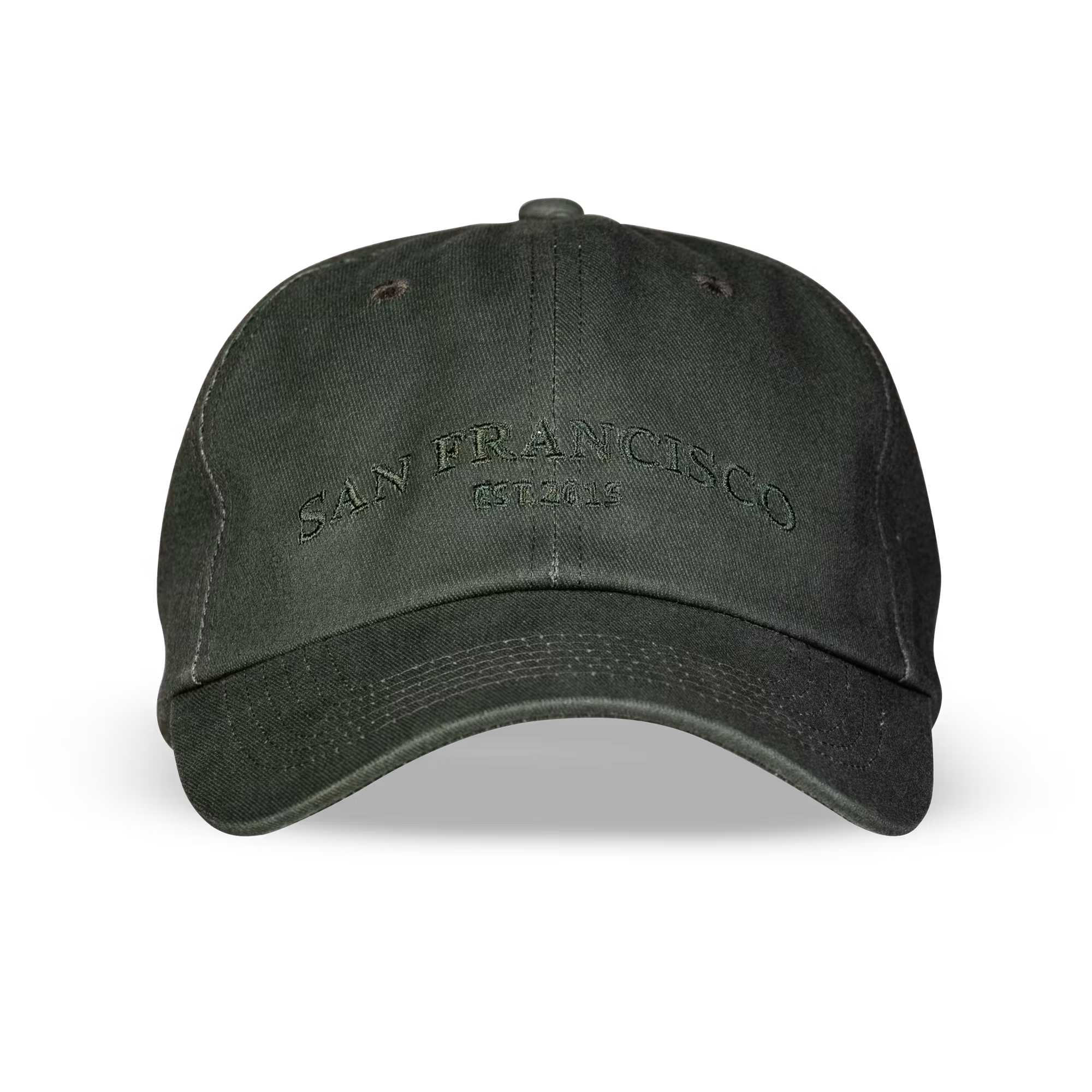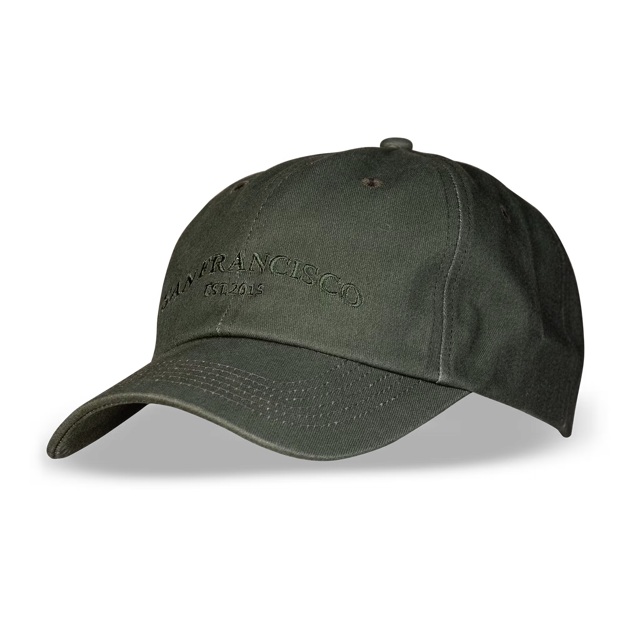 Ge din stil en tidlös touch med vår gröna keps som andas vintagekänsla. Framsidan är smyckad med en broderad SAN FRANCISCO logga och "est. 2015" - året då EDD grundades.