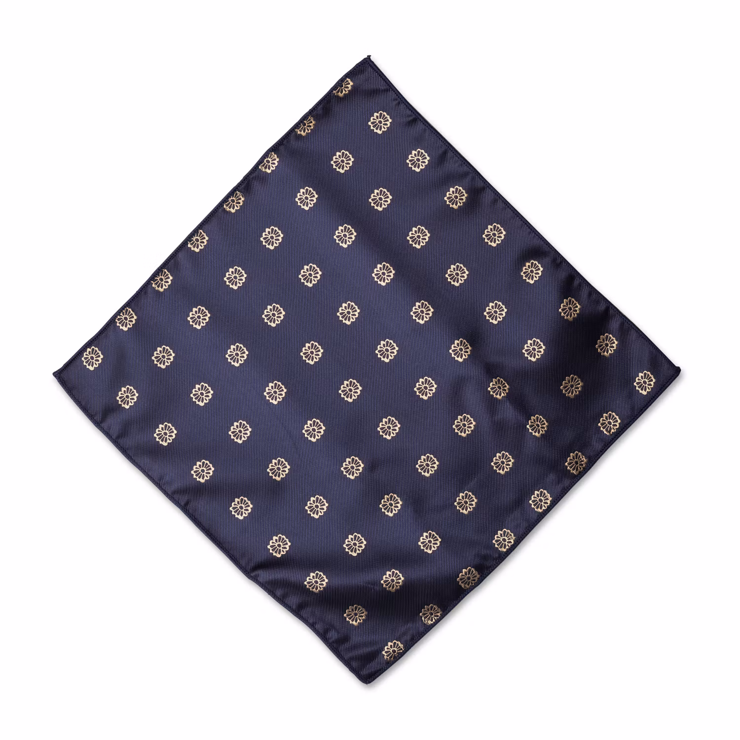 Den djupa mörkblå basen kombineras med ett dekorativt mönster i varma sandfärgade toner, vilket ger slipsen en tydlig karaktär utan att kännas överarbetad. Slipsen och näsduken är tillverkade i 100% polyester, vilket ger ett fint fall och en mjuk, behaglig känsla.