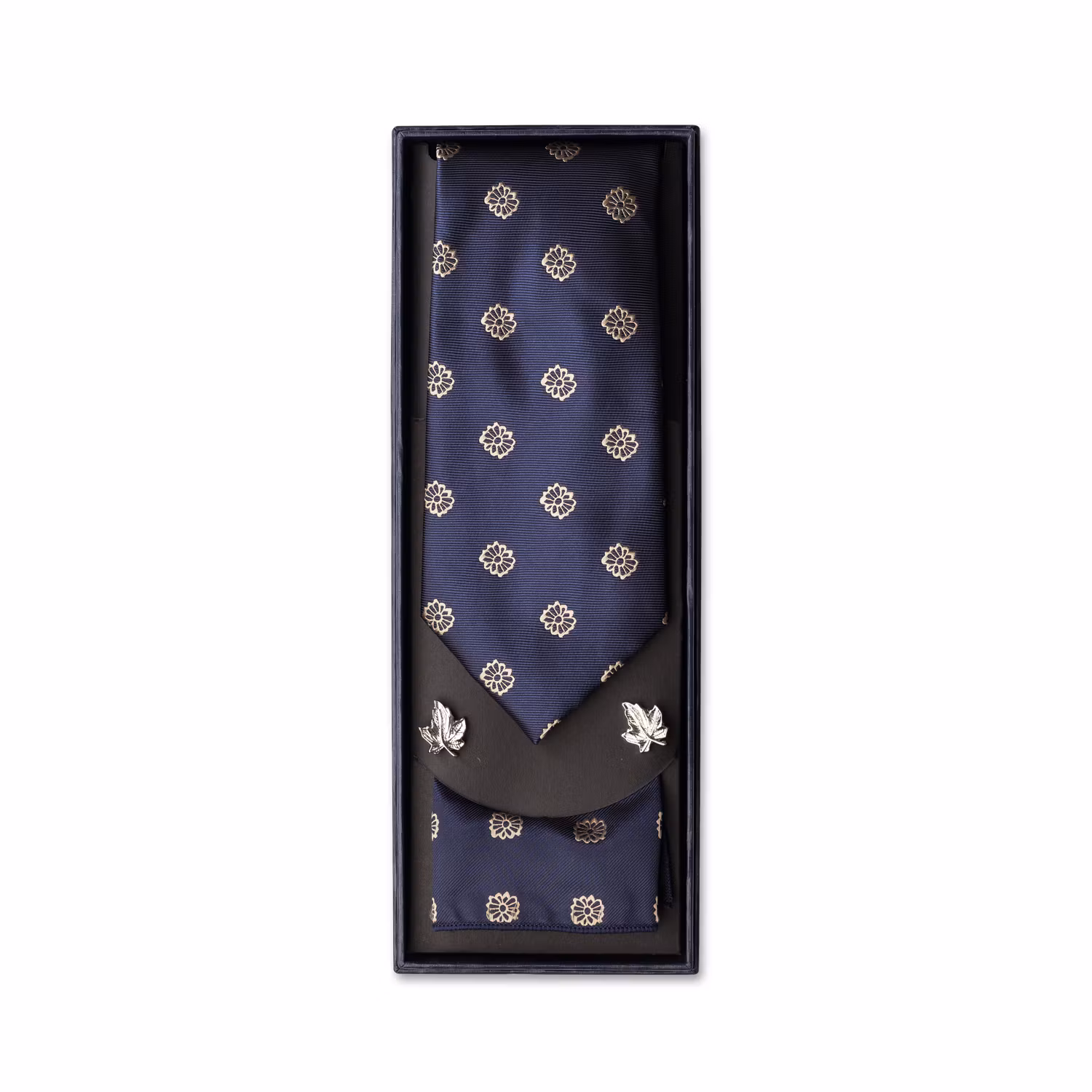Upptäck ett elegant slipsset i navy med sanddetaljer från edd – en klassisk färgkombination som ger ett exklusivt och sofistikerat uttryck. Setet innehåller slips, näsduk och manschettknappar, perfekt matchade för att skapa en stilren helhet.